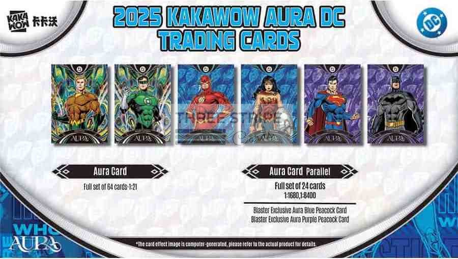 Each box features Limited Edition Cards including (1) Debut Covers Card, Aura Card or Blaster EXCLUSIVE Energy Card, (2) Chibi Card, DC Legacy Card or Blaster EXCLUSIVE Waterfall Card